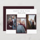 Cartão de saudação de 3 fotos de colagem Elegante de Orçamento de Ano Novo. O verso tem mensagens e fotos personalizadas que você também pode editar. Apresenta quadros vermelhos para fotos. Projetado para casais recém-engajados ou casais casados, mas também pode ser usado por famílias.