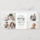 Na moda e cartão festivo de Natal que apresenta tipografia empilhada que diz: "Feliz Natal e feliz ano novo." Personalize com suas próprias fotos e texto. Apresentando nossos louros de aquarela pintados à mão com amoras vermelhas, e vem com um padrão de geo vermelho da moda atrás para um toque especial extra.