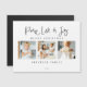 O design na parte da frente consiste na tipografia cursiva divertida de "Paz, Amor e Alegria Feliz Natal". Adicione uma foto personalizada de sua família e adicione o nome da família e o ano. Este design é moderno, chique, divertido e alegre.
