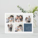 O moderno cartão de colagem de fotos do Chanucá apresenta cinco fotos quadradas organizadas em um layout de grade, com sua mensagem de feriado pessoal e nomes em branco, em azul-marinho claro, no canto inferior direito. Um simples e mínimo design de Chanucá que mostra suas fotos favoritas.