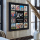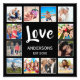 Crie sua própria colagem personalizada de 12 fotos, impressão de fotos com suas imagens personalizadas em um simples fundo preto moderno. O rosto da impressão de fotos também apresenta seu nome de família, ano estabelecido e um roteiro manuscrito de "Amor". Adicione suas fotos, designs ou trabalhos de arte favoritos para criar algo realmente único.
