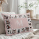 Crie a sua própria colagem personalizada de 16 fotos, travesseiro em branco fundo rosa. A face do travesseiro também apresenta seu monograma. Adicione suas fotos, designs ou trabalhos de arte favoritos para criar algo realmente único.