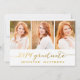 Cartão com fotos de colagem manuscrito convidando sua família e amigos para a festa de formatura de sua filha. Colagem Simples | Convite à festa de formatura para 2014. Design por Elke Clarke © Visite nosso compro www.zazzle.com/monogramgallery* para mais designs e estilos. Adicione suas próprias fotos e texto. Uma simples capa de texto de letra de folha de ouro escrita à mão (efeito fotográfico impresso) com as palavras "Formando 2014" com um design de colagem de três fotos. Substitua a foto de exemplo por sua. Cor branca e dourada.