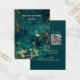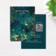 Cartões modernos para exibição de colchões de negócios de joias verdes e douradas esmeraldas com linhas recortadas e 2 códigos QR. Personalize-o com seu nome de compro, site, contas de mídia social, foto, endereço e dois códigos digitalizáveis com um link para seu site, Etsy,...