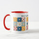 Uma caneca única e colorida com padrão de colcha de retalhos que as costureiras e artistas de costura vão adorar. Impresso com imagens de blocos de colcha de retalhos e flores bordadas com detalhes realistas. Uma legenda "Quando a vida lhe dá restos, faça uma colcha" pode ser editada para outro texto no editor fácil da Zazzle, se desejar. Personalize ainda mais com seu estilo favorito, seleções de tamanho e cor.