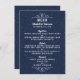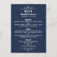 Estes cartões são perfeitos para qualquer casal planejando um casamento romântico moderno. O design apresenta estrelas simples e muito elegantes sobre um fundo azul marinho chic com uma letra branca tendenciosa. Este design pode ser personalizado para se adequar ao seu evento especial e será o menu jante perfeito para qualquer festa moderna e moderna, incluindo chás de panela, noivados, chás de casamento, festas de aniversário e muito, muito mais.