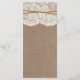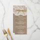 A coleção de casamento do arco gêmeo rústico é uma design com um adorável fundo de efeito de burlap, rústico, com uma trim romântica de efeito de renda branca vintage, terminou uma fita e um arco gêmeos. Esses cartões de menu podem ser personalizados para sua ocasião especial e faziam o menu perfeito para qualquer casamento rústico, chá de panela, festa de noivado, festa de aniversário e muito, muito mais. *Observe que o Zazzle só vende cartões de menu impressos para que essas placas não tenham nenhum material real de burlap, renda ou fio. EXIBIR ITENS CORRESPONDENTES PARA ESTA COLEÇÃO