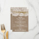 A coleção de casamento do arco gêmeo rústico é uma design com um adorável fundo de efeito de burlap, rústico, com uma trim romântica de efeito de renda branca vintage, terminou uma fita e um arco gêmeos. Esses cartões de menu podem ser personalizados para sua ocasião especial e faziam o menu perfeito para qualquer casamento rústico, chá de panela, festa de noivado, festa de aniversário e muito, muito mais. *Observe que o Zazzle só vende cartões de menu impressos para que essas placas não tenham nenhum material real de burlap, renda ou fio. EXIBIR ITENS CORRESPONDENTES PARA ESTA COLEÇÃO