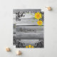 Casamento formal rústico perfeito ou country - madeira de celeiro cinza desgastada com uma variedade de girassóis amarelos brilhantes em papelaria de casamento combinando para uma coleção de casamento completa. Acabamento com renda preta vibrante - este é um visual muito único e moderno para um visual country chique formal - ótimo para o casamento country romântico à moda antiga. NOTA: Este produto de papel não tem madeira real, flores ou renda - estes são artisticamente projetados para parecerem reais.