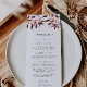 Nosso casamento rústico de chic ou menu especial mostra seus cursos iniciais, entretenimentos e sobremesas acentuados com um spray de folhas de queda de aquarelas em tons de outono de roxo e ameixa ouro roxas e roxas. "Menu" aparece no topo em letras elegantes de caligrafia. Coordena-se com a nossa coleção de casamento de Harvest. Use os campos modelo para adicionar as informações do menu e clique em "Personalizar" para reposicionar os elementos, se necessário. Precisa de ajuda? Entre em contato comigo através do link "Perguntar a este Designer" nesta página.