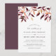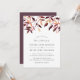 O convite elegante para casamento russo apresenta uma inscrição castanha escura em blocos quicos e itálico com sotaques caligráficos, tocada por pulverizações de folhagem de cascata de aquarela em tons ricos de colheita de outono de púrpura e ouro plum.