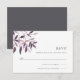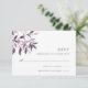 Placa RSVP elegante russa para queda ou casamentos no inverno apresenta um spray de folhagem de queda de cor d'água em tons mutados de rosa pincel, ameixa burguenta e massa. Personalize com sua data de RSVP desejada, bem como aceite e recuse o texto. Concebido para corresponder à nossa coleção de convites Harvest Blush.