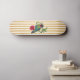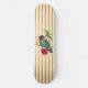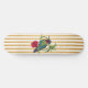 Deck de skate com ilustração de colibri e listras douradas verticais.