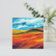 Colorida paisagem abstrato de colinas e céu em cores amarelo, vermelho, verde e azul.