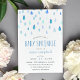 Os convites para bebês de cor aquosa doce apresentam queda de gotas de chuva em tons de pastel e azul de lapis. Personalize com o seu bebê, solte os detalhes abaixo usando os campos de modelo. Cartões invertidos a azul claro sólido.