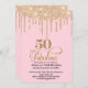 Colírio rosa e Dourado 50º Convite de Aniversário