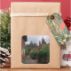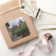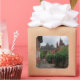 Um autocolante de fotos de souvenir quadrado de um caminho que leva a Collonges-la-Rouge, a vila vermelha, com suas casas vermelhas e castelo vermelho de pedra com torres no Limousin, na fronteira com a região de Dordogne, na França.