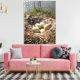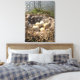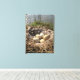 Esta canvas mostra uma foto de um ninho de ganso em uma lagoa com cinco ovos.
