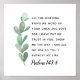 Esta elegante design de arte de escritura mostra tipografia no estilo caligráfico com a mensagem: "Deixe a manhã me trazer a palavra do seu amor inabalável por ter depositado minha confiança em você. Mostre-me o caminho que eu deveria seguir para você e confio minha vida. Salmo 143:8." Todo o texto em design totalmente editável e inclui o acento de laurel de cor d'água na borda esquerda.