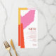 Bloqueio de cor abstrato em uma paleta colorida de cor rosa-quente, laranja tangerina e amarelo ouro fornece um fundo impressionante para as peças desta suíte de casamento contemporânea. O cartão 'Menu' do casamento mostrado aqui é uma adição chamativa à sua decoração de mesa. Adicione as seleções de menu, as iniciais e a data do casamento usando a modelo fornecida. Procure ID740 para ver outras opções de cores e produtos adicionais com este design.