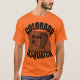 Um mapa do Colorado estilo grandioso com pegadas de Pé Grande pelo artista/designer Charmaine Paulson em uma camiseta Roupa americana (qualquer). A camiseta tem o texto Colorado Home de Sasquatch. ©2012