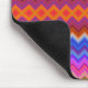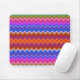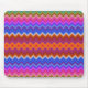 Colorful mouse pad featuring vibrant zigzag stripes in pink, blue, orange, and green hues. A white mouse rests beside it on a light surface.