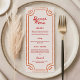 Bring joyful vintage vibes to your celebration with our Colorful Retro Hand Written Wedding Flat Menu. Designed with playful handwritten typography and vibrant retro-inspired colors, this menu card adds charm, personality, and fun to your wedding table setting. Perfect for creative, boho, or retro-themed weddings, it beautifully displays your dinner selections while elevating your décor. Printed on premium-quality cardstock and fully customizable, it’s a lively and stylish detail your guests will remember.