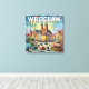 A radiant sky swirls above Wroclaw as pastel facades, market stalls, vintage cars, and the soaring twin towers of the cathedral bring the old city to life. This canvas art captures the charm of Poland’s historic riverside with painterly light, European architecture, and nostalgic street energy. Perfect for hotel decor, guest rooms, or elegant homes, it adds warmth, culture, travel romance, and timeless city beauty to any wall.