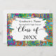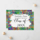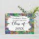 Celebre seu formando favorito com este convite gráfico moderno e divertido. As configurações de modelo permitem adicionar o nome do formando, o segundo grau e o ano da classe de graduação. As palavras "Classe de" foram renderizadas a preto com uma fonte moderna de script da minha coleção. Eles foram transformados em um gráfico que pode ser redimensionado ou reposicionado como quiser. Todo o outro texto foi configurado no modelo usando uma fonte serif versátil em preto; a fonte e os tamanhos podem ser alterados conforme necessário. // A superfície da placa está coberta por uma peça de minha arte que é então parcialmente coberta por uma série de pinceladas de arte branca. O trabalho de arte é uma peça festiva e colorida da minha abstrato que apresenta texturas aquáticas sobrepostas com formas de confete quadrado em muitas cores diferentes. // A parte traseira apresenta uma versão rotacionada do design de fundo gráfico, uma pequena pincelada branca no centro e uma pequena parte de um boné de formatura sobre o crachá. Você pode optar por usar esta área para um monograma, se preferir. // Concebida por Melody Watson para Paper Muserie
