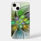 Uma flor colorida de fantasia de arte fractal, extraordinária, abstrato e moderna. As cores e formas fazem desta obra floral de arte um apanhador de olhos e um design decorativo para o seu iPhone 14 e mais.