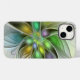 Uma flor colorida de fantasia de arte fractal, extraordinária, abstrato e moderna. As cores e formas fazem desta obra floral de arte um apanhador de olhos e um design decorativo para o seu iPhone 14 e mais.