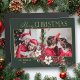 Design de Natal festivo e colorido, com duas fotografias com dourado personalizado, um gráfico de texto de Natal feliz com um spray de poinsetos tradicionais de Natal e holly sobre fundo verde.