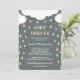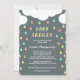 Chá de fraldas de convite em cinzas com três nuvens brancas esvoaçadas que chovem gotas em verde, amarelo, laranja, vermelho e azul. Um convite para chás de fraldas bonitinho, neutro em termos de gênero, com combinações de cores modernas. Um dorso com um adorável padrão de azulejo em pêssego e branco.