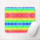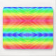 Colorido mousepad com um padrão brilhante e simétrico de listras diagonais de arco-íris e formas geométricas, evocando um clima vibrante e alegre.