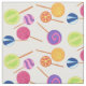 Lollipops multicoloridos divertidos são impressos em um padrão no tecido personalizado. Os sabores descritos incluem limão, limão, morango, mirtilo, laranja, espiral de uva e framboesa. A cor de fundo mostrada é branca e você pode personalizar a cor de fundo. Obrigado por comprar em CherylsArt no Zazzle.