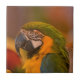 Este azulejo apresenta um belo papagaio Macaw com um fundo de cor suave
