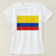 A frente desta camiseta exibe corajosamente a bandeira colombiana com suas bandas distintivas horizontais amarelas, azuis e vermelhas. Isso é combinado atrás por um mapa atraente da Colômbia.