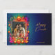 Este cartão "Desejos Radiantes de Diwali" é adornado com elementos festivos ricos. O fundo é um gradiente de transição azul profunda para uma matiz mais leve, borrifada com pequenos pontos brilhantes que se assemelham a estrelas ou luzes, melhorando o humor celebratório. Ao redor do quadro para a foto personalizada, os vibrantes motivos florais em pinks brilhantes, laranjas e roxas dão vida ao design. As lâmpadas de óleo acesas (diyas), ouros e laranja, são colocadas de forma destacada acima, abaixo e ao lado da armação, simbolizando a iluminação tradicional das lâmpadas durante Diwali. Esses elementos criam um brilho quente e convidativo, acrescentando ao encanto festivo do cartão. No lado direito, a mensagem "Happy Diwali" é escrita num elegante script amarelo, complementado pelo texto personalizável "da [sua denominação] Family" numa fonte pequena e elegante abaixo. A parte traseira da placa apresenta um fundo azul escuro sólido, que corresponde ao esquema de cores da frente. O texto personalizável no verso é escrito em uma fonte branca, fornecendo um contraste nítido e claro para facilitar a leitura. Esse design encapsula o calor e a alegria das comemorações de Diwali, com suas luminosidades brilhantes e seus sotaques florais coloridos.