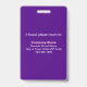 Placas de identificação com texto simples e foto do funcionário que você pode personalizar para você e seus funcionários. O design das cores e o formato são textos rosa e branco em fundo roxo e formato de retângulo em retrato. Para personalizar esta placa, digite o nome da sua empresa ou negócio, endereço, número de telefone, nome do funcionário, cargo do funcionário, número de identificação do funcionário e envie a foto do funcionário. Depois de digitar os textos e enviar a foto, por favor verifique a aparência nos lados frente e verso. Se a aparência lhe agradar, você pode fazer o seu pedido agora. Se você precisar redimensionar e mover os textos e a foto para caber nesta placa, por favor faça as alterações na ferramenta de design. Você também pode fazer outras alterações na ferramenta de design de acordo com a aparência que você preferir, como alterar a cor do fundo, a cor da fonte e o estilo da fonte.