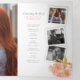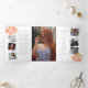Ordem funerária de serviço tridobrada seis páginas, primavera cor de pêssego, cor de laranja cor de laranja, programa de arte de aquarela. Embelado com flores cor-de-rosa-coral-laranja pastel e folhas verdes primavera-claras-amarelas sobre fundo branco. Basta substituir o texto de exemplo e os porta-fotos brancos com formato branco e estilo instantâneo por suas próprias fotos especiais e detalhes de informações. Pintura botânica original a aquarela e design por Sarah Trett para www.mylittleeden.com (fotos são imagens marcadoras para você substituir por sua).