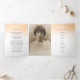 Ordem de serviço do programa funerário rosa de laranja branco de damasco e pomba branca em memória amorosa triplicada de 6 páginas com três fotos do programa funerário. Um programa elegante onde você pode simplesmente substituir o texto de exemplo e as fotos por suas próprias fotos e detalhes do serviço de memorial. Outros itens e opções de cores correspondentes estão disponíveis para refletir o rosa de cores favorito dos seus entes queridos. Fotografia de design e rosa por Sarah Trett para www.mylittleeden.com (Fotos são imagens marcadas apenas para você substituir por seus entes queridos).