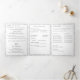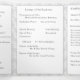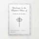 A design apresenta a aparência de um local branco como pano de fundo para o formato tradicional de uma missa nupcial católica. As palavras personalizáveis, "A Massa Nupcial de" são apresentadas como o título em cobrir e são seguidas pelos nomes de noiva e noiva. O design central apresenta uma cruz prateada com duas bandas de casamento douradas. A imagem esmaecida do sobrenome de casais grava o fundo. Possui espaço para até seis damas de honra e padrinhos de casamento, uma Menina Flor e Portadora de Anéis. Também inclui espaço para duas fotos, além de uma mensagem de gratidão e uma mensagem memorial opcional. Muito elegante. Projetado para coordenar com a coleção de Suite Casado Monograma Católico de Lace Branco.