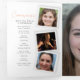 Ordem de serviço do programa funerário com fotos do estilo de captura instantânea de lado duplo e fotos da página de cheio, branco, cor de pêssego laranja cor de laranja. Substitua o texto de exemplo e nove fotos com marcadores de posição por suas próprias fotografias especiais, ordem de serviço memorial, obituário, leitura ou poema, e reconhecimentos, e outros detalhes de informações pessoais, conforme necessário. Design de Sarah Trett para www.mylittleeden.com (as fotos são apenas imagens marcadas para você substituí-las por suas próprias fotos especiais).