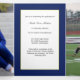 Com Dobra Tripla Anúncio de Graduação de Foto Amarelo Azul &Dourado
