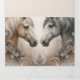 Opção de excelente para o lançamento do seu recem casados. Cobrir único apresenta dois cavalos elegantes em exibição decorativa. Uma vez que você abre o anúncio, duas das suas fotos de casamento desejadas estão na vista de cheio junto com sua mensagem. Adicione duas fotos. Pastel e cores elegantes. Use a modelo para adicionar suas fotos e alterar o texto de acordo com as suas necessidades.
