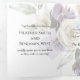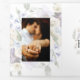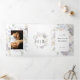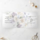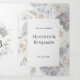 Celebre a sua história de amor em estilo com este elegante convite de casamento triplo, com um buquê de cor d'água romântico de rosas de marfim, ranúculo cremoso, lavanda macia e flores azuis, e verde-azul. O formato triplo espaçoso oferece espaço para todos os seus detalhes de casamento, além de uma foto personalizada de noivado, criando uma lembrança memorável para os convidados. Perfeito para casamentos de primavera, verão ou jardim, esta design combina elegância clássica com encanto moderno. Personalize nomes, datas e textos para corresponder ao seu dia especial. Par com peças coordenadoras na mesma coleção floral para uma suíte de casamento coesa.