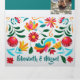 Personalize este belo convite de casamento bilíngue em qualquer duas línguas - o inglês e o espanhol ilustrados. Este bordado floral mexicano inspirou design em azuis pastel brilhantes, laranja, roxo e amarelo dois espaços de convite para cheios, de modo que todos os seus convidados possam ver ambos os idiomas, além de um cartão RSVP integrado e de um site de casamento. Tudo em um. Também disponível com fundo preto. Por favor, contacte-me para fazer a correspondência com designs de papelaria de casamento.