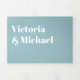 Casamento elegante e simples para a noiva e noiva modernas. Todos em um convite triplo que vem com placas de resposta RSVP, Detalhes e informações e uma foto do casal. Design limpa com fontes tipográficas arrojadas em azul e branco poeirentos. Perfeito para qualquer casamento!