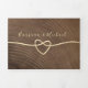 Convite de casamento de madeira triplo simples, elegante, moderno e minimalista, com linda corda dourada em coração e foto do casal.