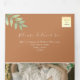 Convite de casamento em terracota triplo, elegante, moderno e boho, com folhagem em aquarela, um simples coração de corda dourada e uma foto personalizada do casal no verso. Adicione a sua foto, os detalhes do casamento e o rsvp.